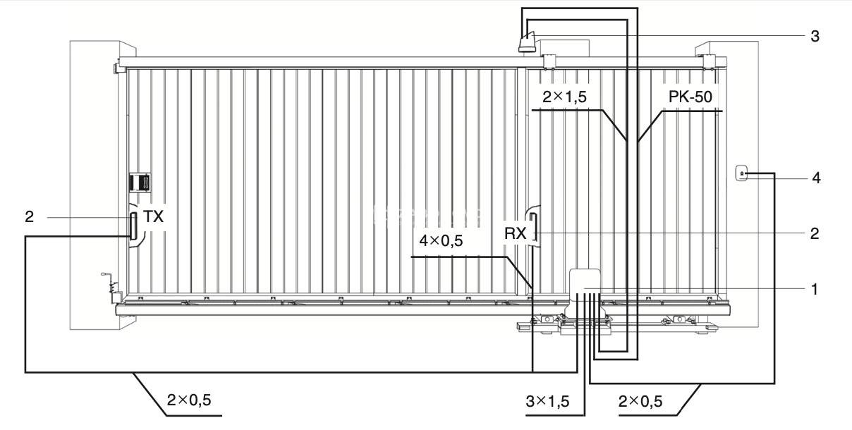 - кабель 4 × 0,5 мм (приемник фотоэлементов);