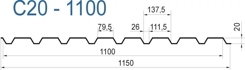 Набор из профнастила марки С-20 с односторонним полимерным покрытием Printech под камень. Цена в рублях за 1 пог.м. | |||